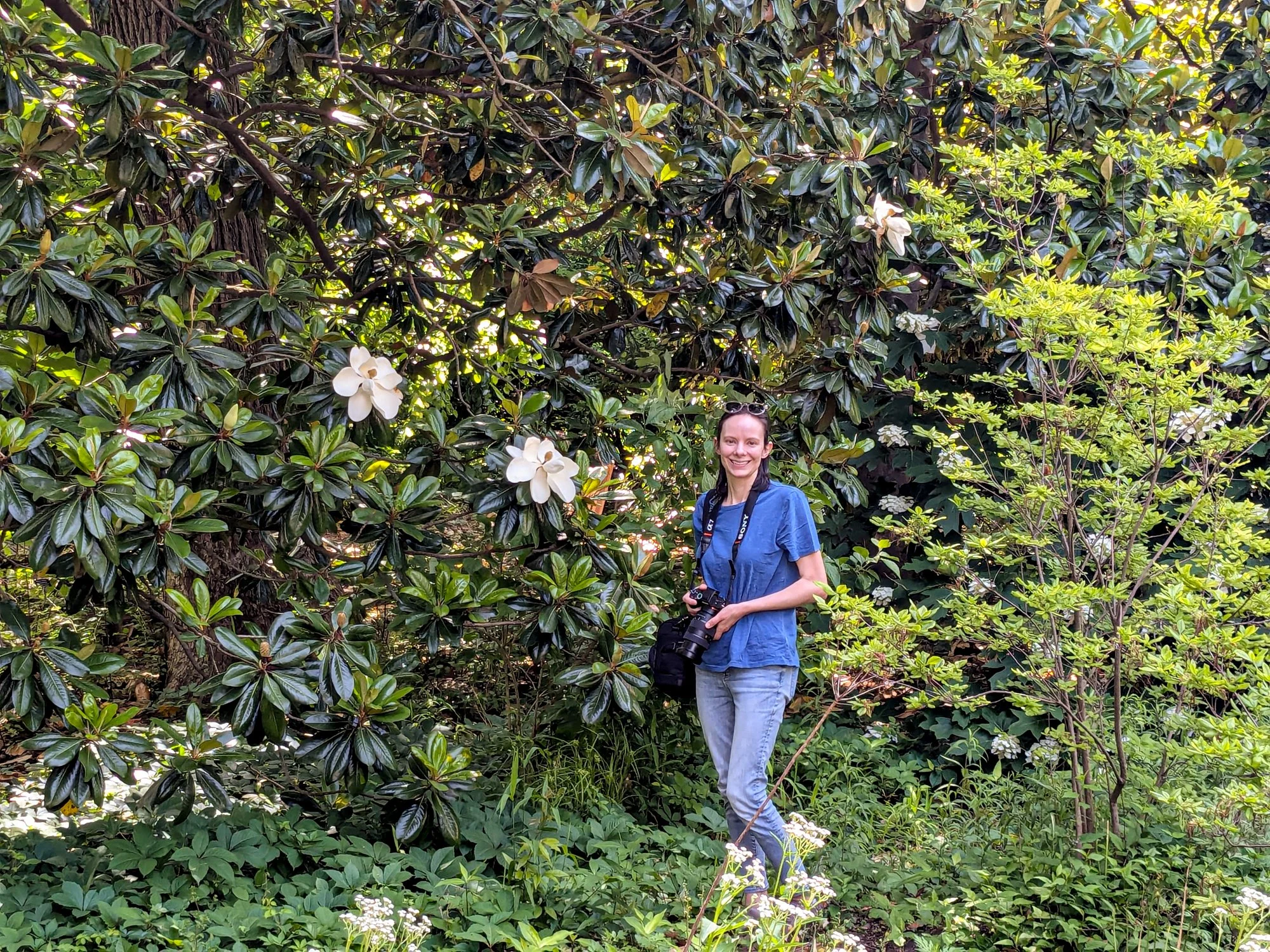 Photographing magnolias for reference in UNC’s Coker Arboretum.
